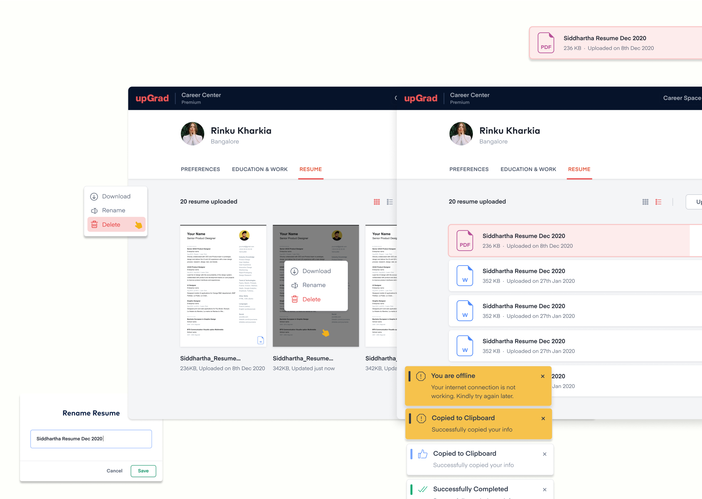 We allowed for building your resume with support text both on web and mobile and created a versioning system for the user to know the edits and use as per need.